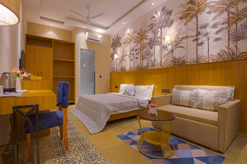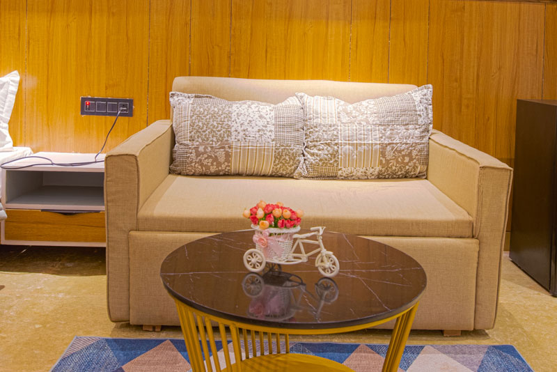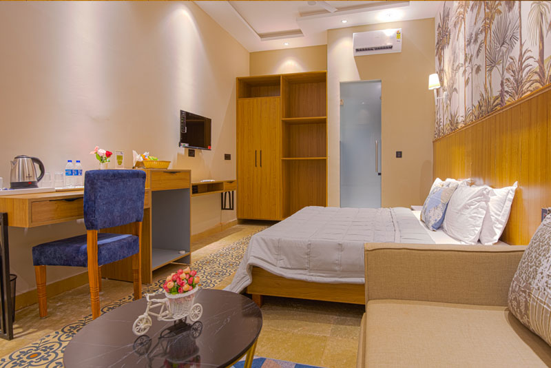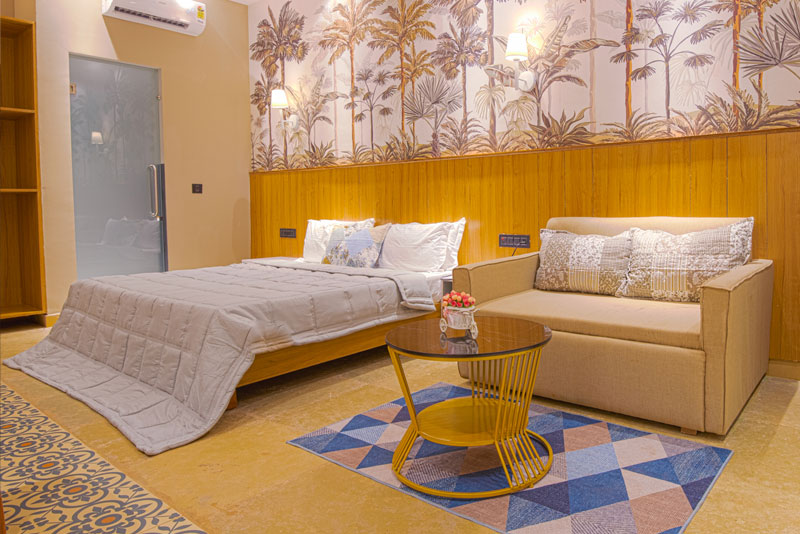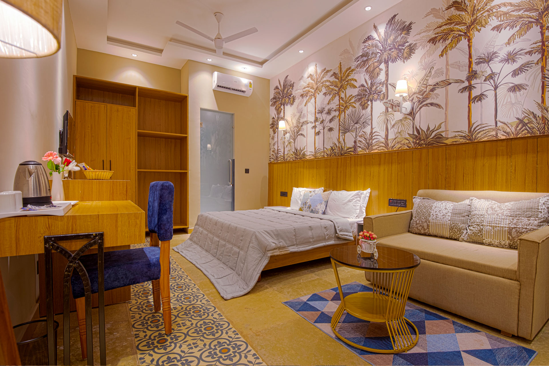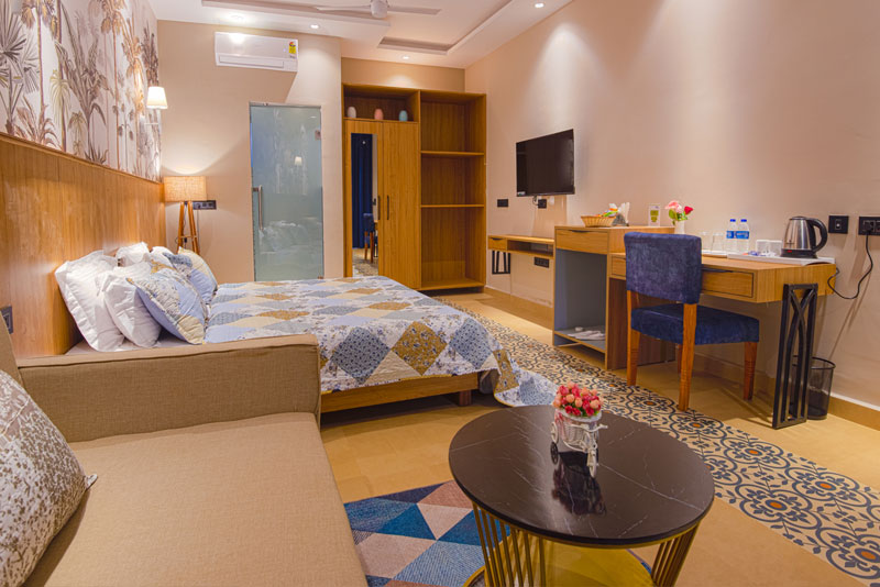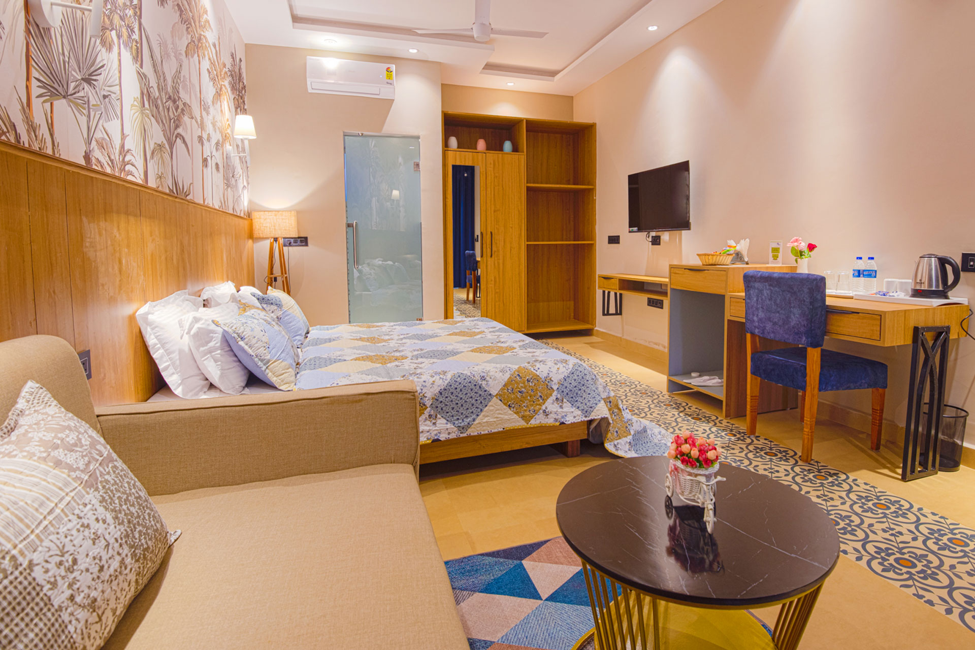 The Premium Luxury Suite Room at Eutopia Beach Resort offers the ultimate in comfort and style. We have 16 spacious rooms in this category, each measuring 24 feet by 16 feet. Every room features a private balcony with a stunning pool view, air conditioning, a TV, and an attached washroom. For added convenience, a sofa-cum-bed and tea-coffee making facilities are provided in each room. Accommodating up to 4 guests, these suites are perfect for families or small groups looking for a luxurious stay. Experience unmatched relaxation and elegance in our Premium Luxury Suite Rooms.